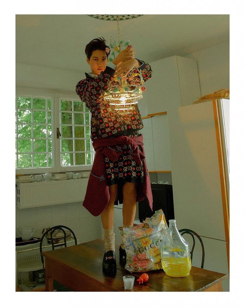 Ambassadeur de la marque Gucci, le chanteur Kai, du groupe de K-pop EXO, s’est prêté à un photoshoot sexy pour Vogue Korea, édition juillet 2019.
