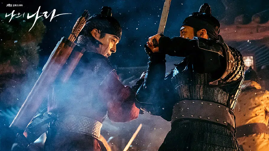 La manière dont Chae Seung Dae confronte ses protagonistes de fiction aux figures historiques de Lee Seong Gye, premier roi de la Dynastie Joseon, et Lee Bang Won, père du roi Sejong le Grand, confère une envergure supplémentaire à My Country: The New Age. Le génie du scénariste s’exprime notamment dans son art de nous laisser appréhender les motivations profondes de chaque protagoniste, bon ou mauvais, historique ou fictionnel. Tout du long, il maintient un parfait équilibre entre les idées véhiculées par ses personnages, et leur incarnation très vivante dans l’intrigue romanesque.