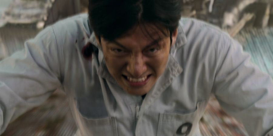 Tae Joong, qui a décidément un instinct de survie hors du commun, réussit à remonter sur la moto en profitant du moment où Yo Han recharge son fusil. Notre héros semble reprendre le dessus, notamment lorsqu’il arrête sa course pour bloquer la bouteille de gaz qu’il a accrochée à sa moto, un moment marqué par l’arrêt de la musique et par un son puissant. Observant la scène à travers l’écran, Yo Han réalise le but de son plan : rouler sur le conduit menant vers l’extérieur pour s’échapper.
